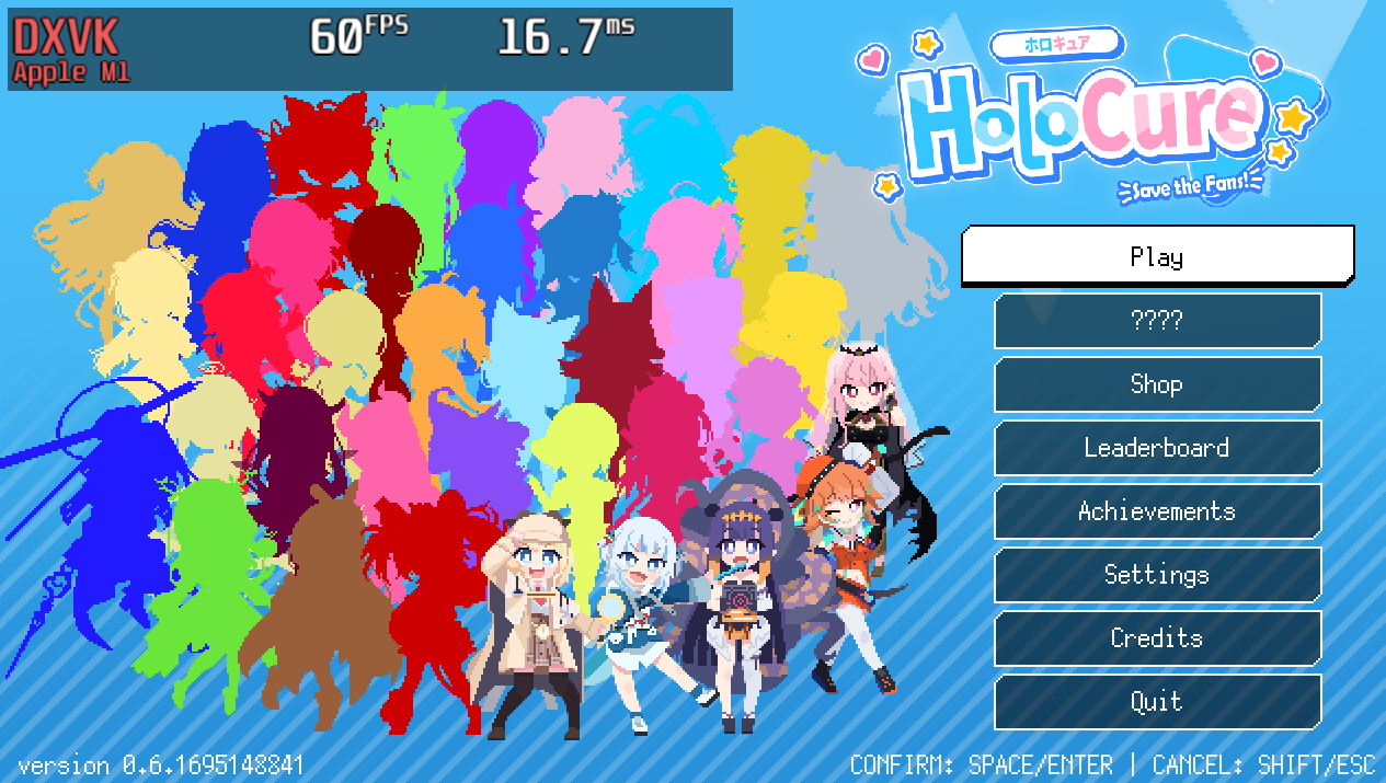HoloCure running on Honeykrisp ft. DXVK, FEX, and Proton.