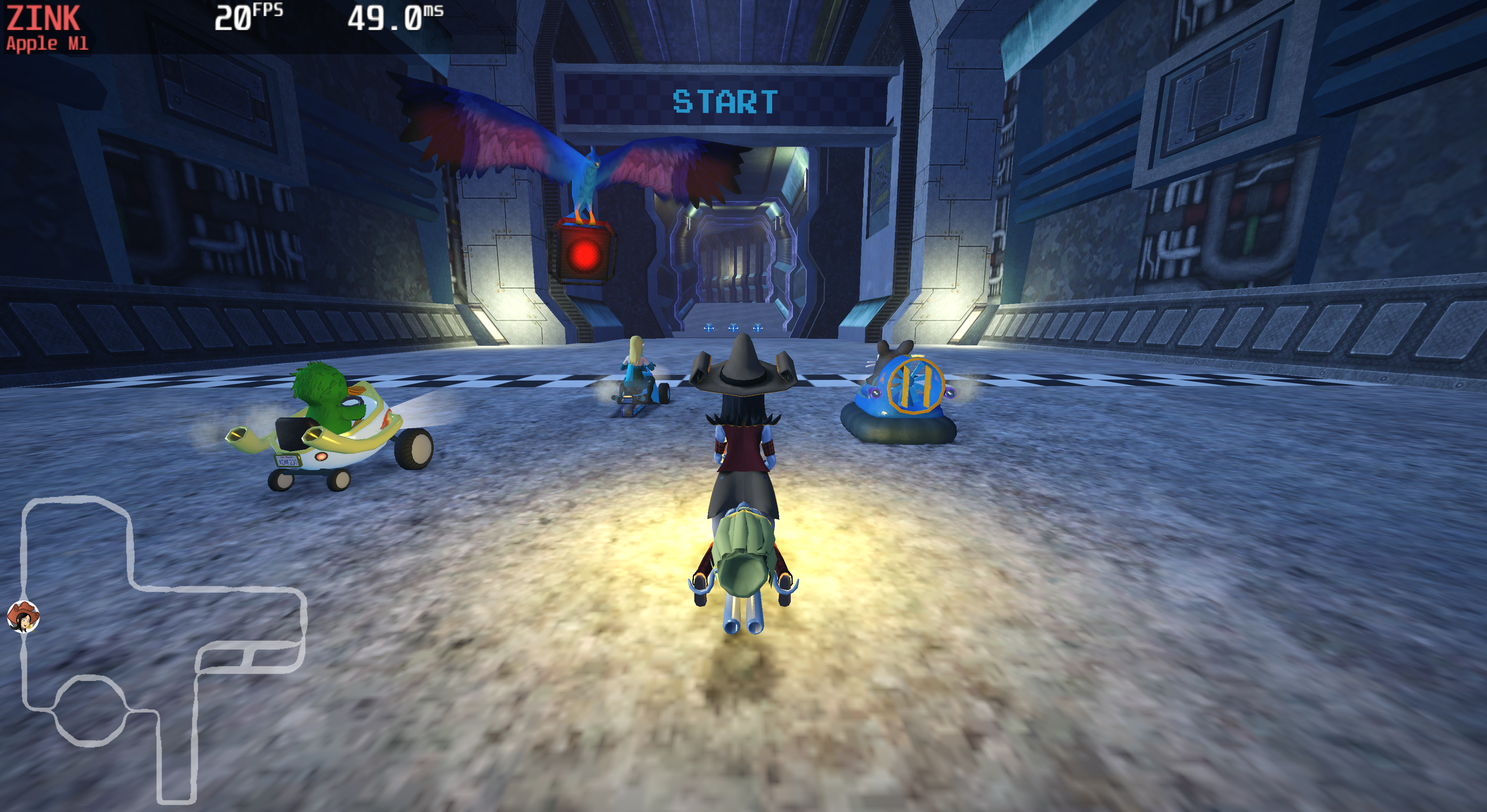 SuperTuxKart rendering with Zink on Honeykrisp, same scene but with better lighting